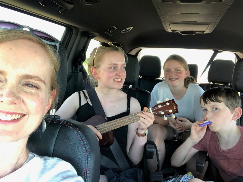 Looking out the window gets boring looking at forests and rock and plains. We ate lots of snacks, and sang along on my twenty-cent kazoo to the songs on the car speakers that were very “Country music.” It was very good music in American because you get the American feel in it.”