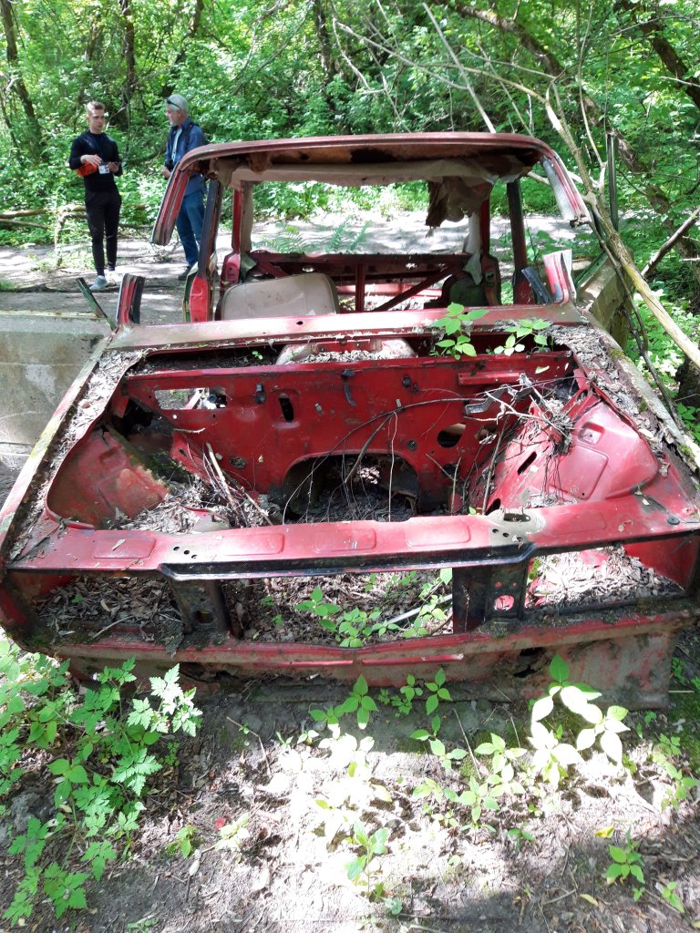 In the forest ghost-village of Zalisa, the naked frame of a small red car, a Lada-Zhiguli to be exact, lies on the ground stripped of every removable part. Every hose, cable and bearing, screw and bolt has been taken.
