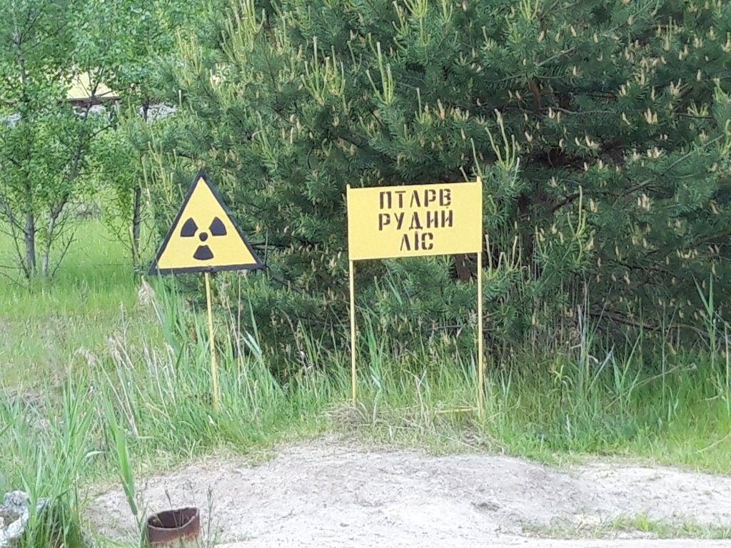 With the forests and towns filled with radioactive fall-out, villages had to be razed and buried; many were literally removed from maps. Those places could never be inhabited again. The forest closest to the reactor turned red in those first days; the trees and grass were scorched, but did not burn. Today still, along the roadside of the ‘Red Forest’, brightly colored, triangular warning signs signal radioactive hot spots in the ground.